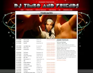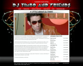 Back to ArchiveWorld-famous DJ Timbo's tour website, complete with blog, sponsor pages, galleries and downloads.