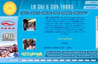 Brochure website for Get Travel's teen tour division focused on high school and college students' Spring Break and Winter Ski trips.